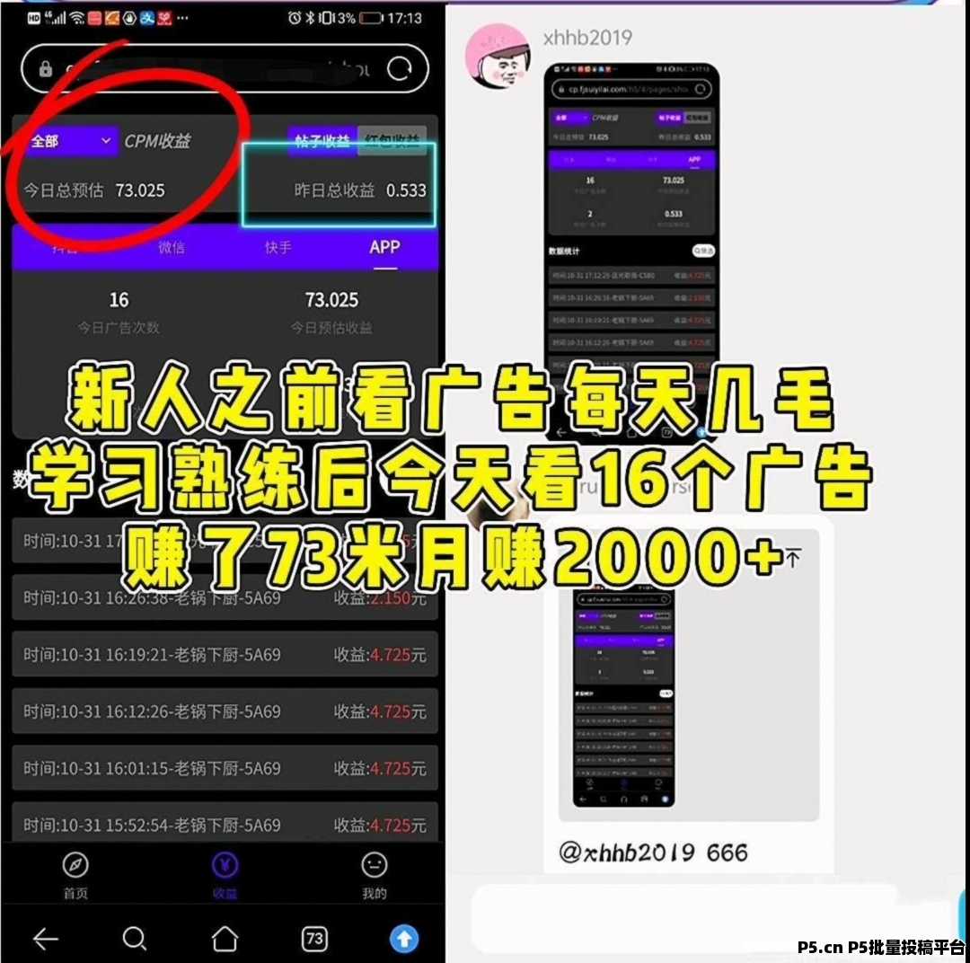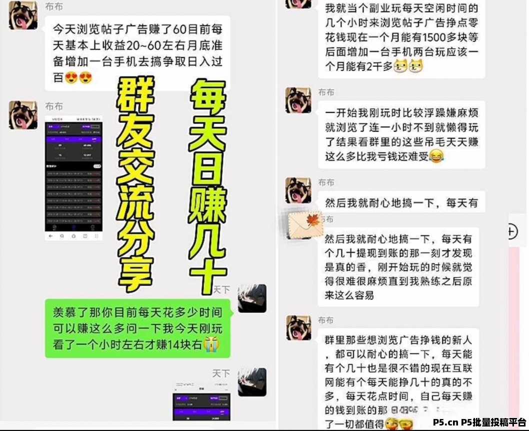 用户通过浏览帖子中的广告内容,每次点击都能获得0.5到5.2元的收益。这样的高回报率让许多人愿意投入时间进行广告浏览。简单来说,就是通过刷广告来实现赚钱目的。